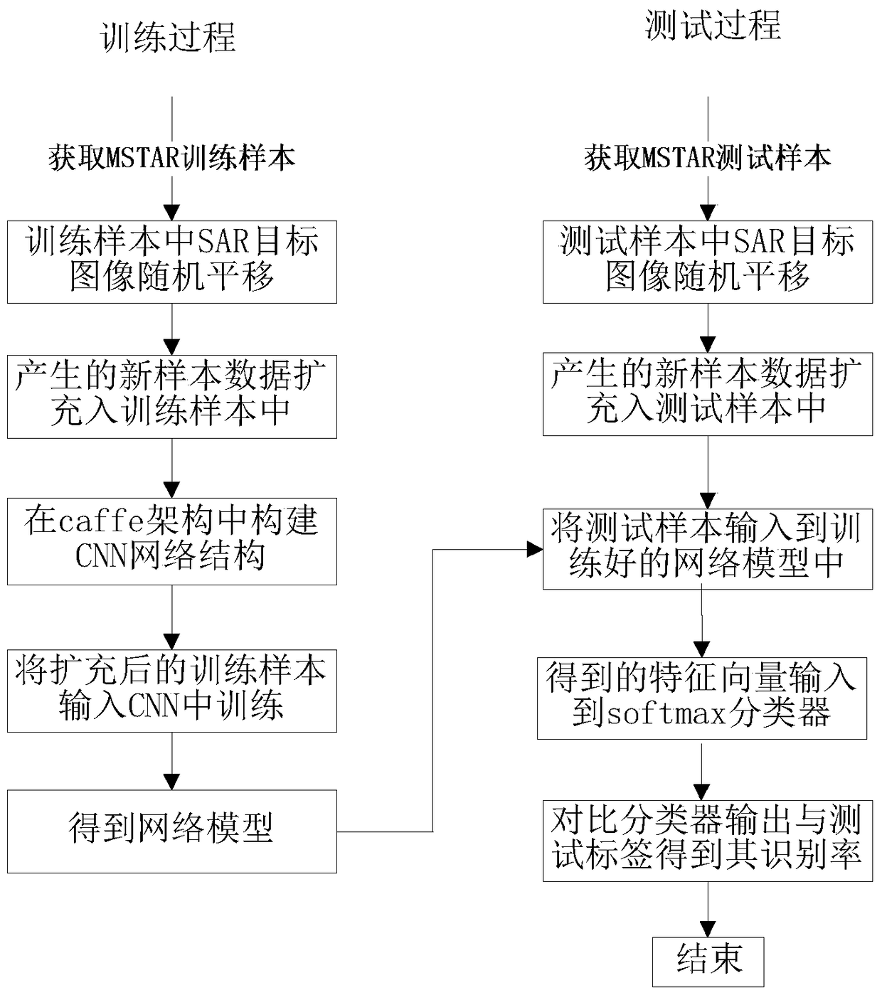 - 项目简介 本发明公开了一种基于CNN的SAR目标识别方法,其实现步骤为:1.对每个训练图像中的待识别目标进行多次随机平移变换,得到新样本,并对这些新样本标上原始图像的标签扩充入训练样本中;2.在caffe架构中构建卷积神经网络CNN结构;3.将扩充后的训练样本输入到CNN中进行训练得到训练好的网络模型;4.对测试样本进行多次平移扩充,得到扩充后的测试样本;5.将扩充后的测试样本输入到训练好的CNN网络模型中测试,得到其识别率。本发明对处于样本图像任意位置的待识别目标均具有高的识别率和稳定的性能,解决了现有SAR目标识别方法受样本图像中待识别目标所处位置影响大的问题。