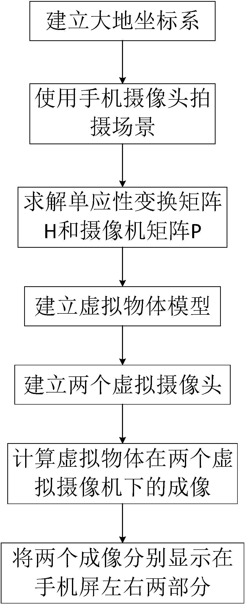 - 项目简介 本发明公开了一种利用手机单目摄像头对虚拟现实眼镜进行增强现实的方法,主要解决现有技术功能单一的问题。其技术方案是:1.根据标识图建立大地坐标系,用手机后置摄像头拍摄含有标识图的场景;2.求解标识图平面与手机摄像头的成像平面之间的单应性变换矩阵H与摄像头的投影矩阵P;3.建立虚拟物体三维模型与两个虚拟摄像头C1和C2;4.计算三维模型上和场景在虚拟摄像头C1和C2下的成像I1和I2;5.将成像I1和I2分别显示在手机屏幕的左右两屏,用手机屏幕充当VR眼镜显示屏,完成AR立体显示效果。本发明实现了使用手机单目摄像头使虚拟现实眼镜完成增强现实立体显示的功能,具有成本低廉、安装简便的优点,可用于工业、教育、娱乐的虚拟可视化。