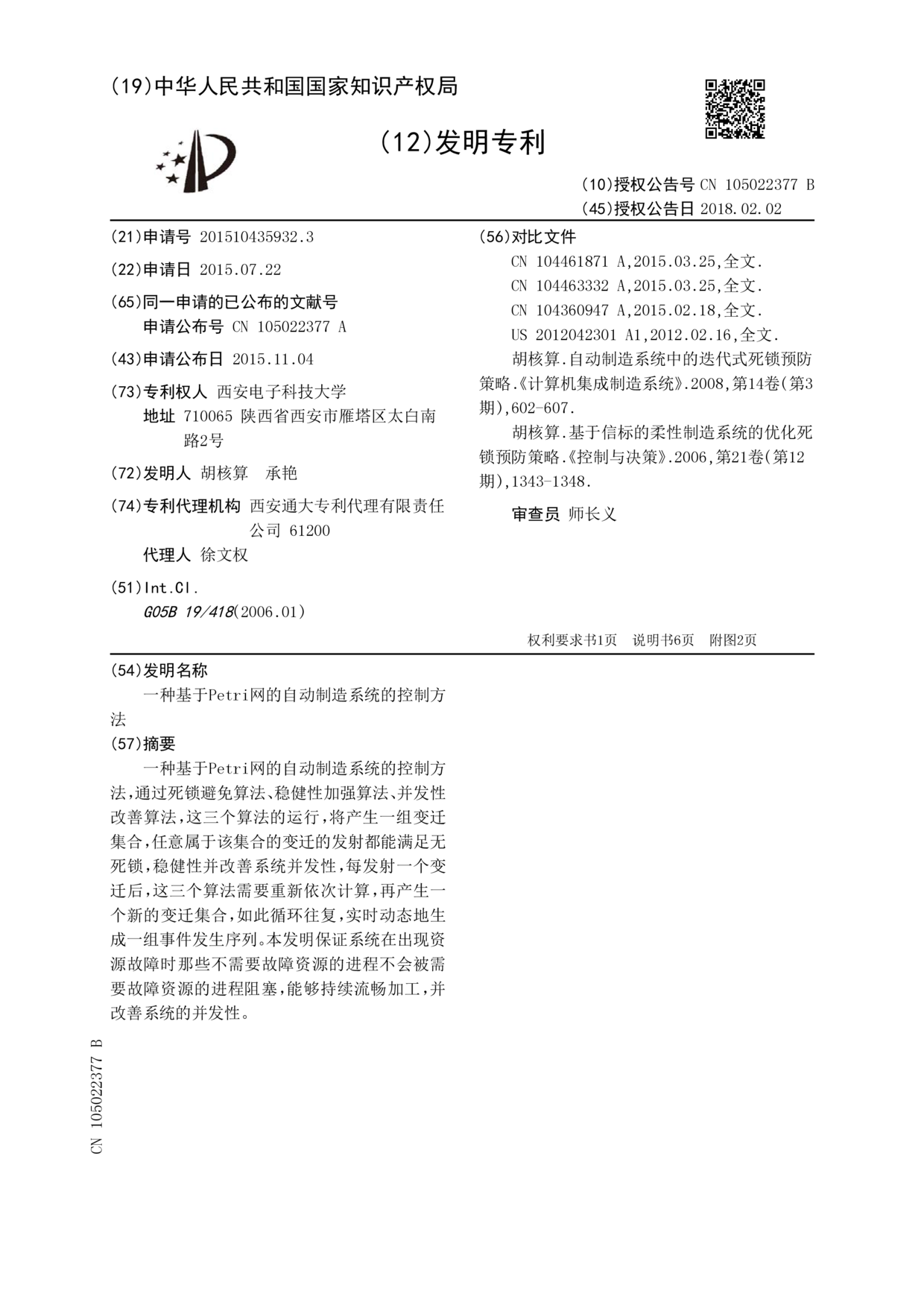 - 项目名称 一种基于Petri网的自动制造系统的控制方法