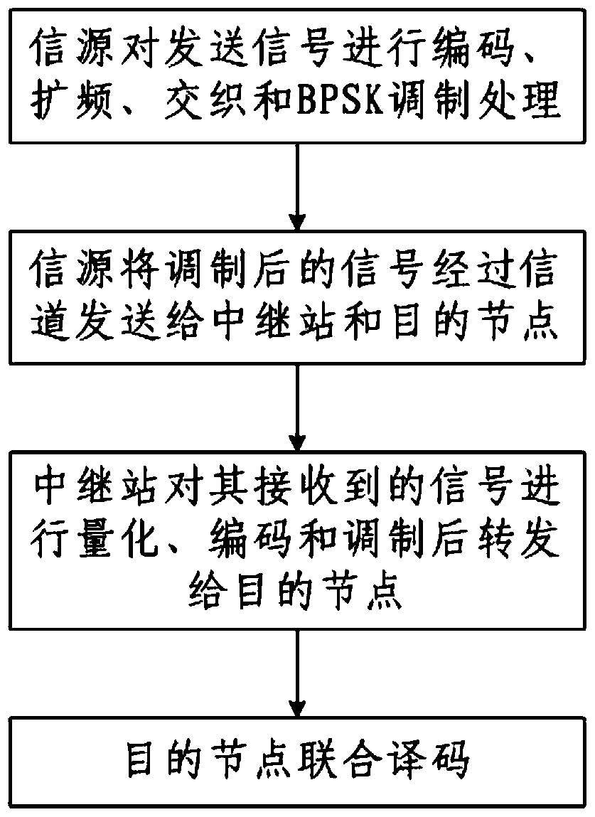 - 项目简介 本发明公开了一种交分多址接入中继系统的去噪互信息保持量化转发方法,包括以下步骤:一、信源对发送信号进行编码、扩频、交织和BPSK调制处理,二、信源将调制后的信号经过信道发送给中继站和目的节点,三、中继站对其接收到的信号进行量化、编码和调制后转发给目的节点,四、目的节点联合译码。本发明设计新颖合理,方法步骤简单,能够很好地处理多址接入中继系统中多个信源量化转发,在译码端进联合译码,并且能够获得更好的性能。