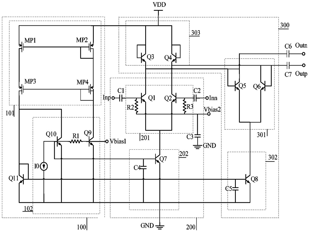 - 项目简介 本发明公开了一种dB线性超宽带可变增益放大器。该可变增益放大器由可变跨导放大器单元、可变负载阻抗单元和增益控制单元组成。所述的可变跨导放大器单元将输入电压信号转换成电流信号,该电流信号经由所述的可变负载阻抗单元转换成电压信号输出。可变跨导放大器单元和可变负载阻抗单元均由尾电流源偏置,该尾电流源的电流值均由所述的增益控制单元控制,故可变跨导放大器单元和可变负载阻抗单元的跨导由增益控制单元调节。增益由可变跨导放大器单元与可变负载阻抗单元的跨导之比决定,增益控制单元合适地调节其跨导即可得到dB线性控制特性。