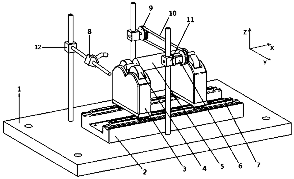 - 项目简介 本发明公开了一种基于差分式电容传感原理的转子高精度动平衡装置,包括底板(1),所述底板(1)上沿X轴方向滑动连接有用于实现不平衡振动提取的电容式转子支撑架(3),电容式转子支撑架(3)上架设有转子(5);所述底板(1)上还固定有与转子(5)联接并驱动转子(5)转动的龙门式转子驱动机构。支撑动框架的移动改变了平板电容器的电容值,从而实现微弱不平衡振动的提取;龙门式结构可以减小装置传动的误差,从而提高装置的精度。与传统动平衡装置相比,本发明所涉及的装置结构简单、灵敏度较高、响应速度快,更适用于对平衡标准较高的超精密转子进行动平衡。