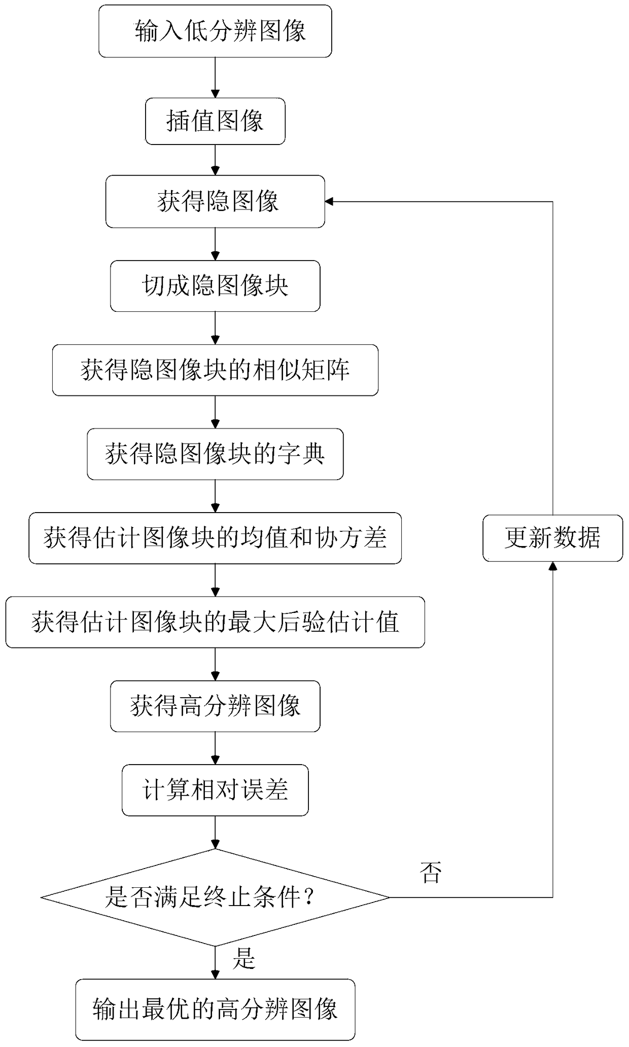 - 项目简介 本发明公开了一种基于最大期望算法的自然图像超分辨方法。其步骤为:(1)输入低分辨图像;(2)插值图像;(3)获得隐图像;(4)切成隐图像块;(5)获得隐图象块的相似矩阵;(6)获得隐图像块的字典;(7)获得估计图像块的均值和协方差;(8)获得估计图像块的最大后验估计值;(9)获得高分辨图像;(10)计算相对误差;(11)判断是否满足终止条件;(12)更新数据;(13)输出最优的高分辨图像。本发明将最大期望算法引入到自然图像超分辨领域中,获得丰富的恢复图像细节信息,适合在复杂情况下的图像超分辨。