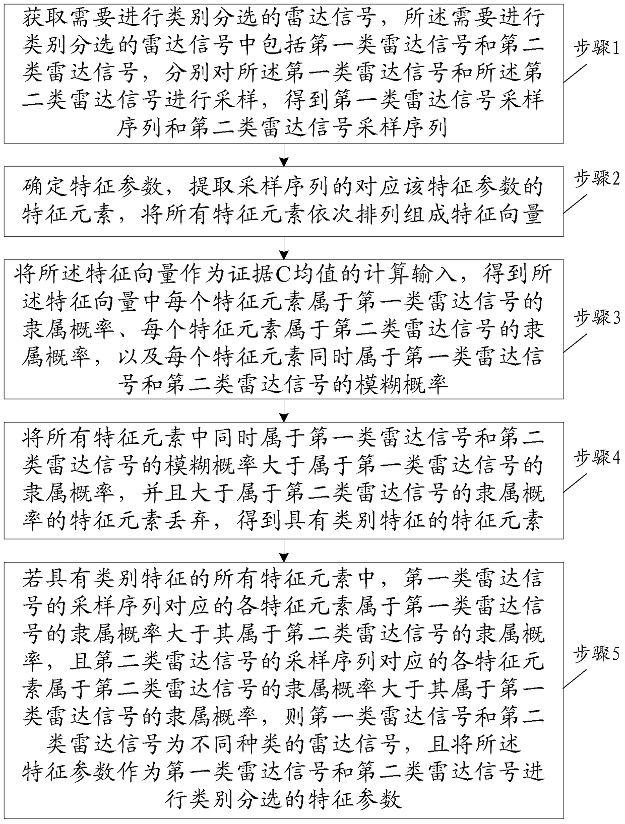 - 项目简介 本发明属于雷达信号分选技术领域,特别涉及一种基于ECM的雷达信号类别分选方法,包括:获取需要进行类别分选的雷达信号;提取需要进行类别分选的雷达信号的采样序列的对应特征参数的特征元素,组成特征向量;将特征向量作为ECM的计算输入,得到特征向量中每个特征元素属于第一雷达信号的隶属概率、每个特征元素属于第二雷达信号的隶属概率,以及每个特征元素同时属于第一雷达信号和第二雷达信号的模糊概率;对每个特征元素进行分类;根据对每个特征参数进行分类的结果,得到对需要进行类别分选的雷达信号的类别分选结果。