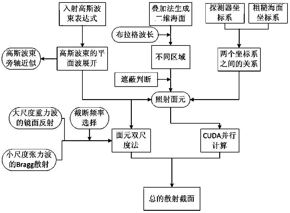 - 项目简介 本发明公开了一种多尺度电大区域粗糙海面后向雷达回波分区并行计算方法,包括:确定雷达高斯波束坐标系、粗糙面坐标系以及两者间的变换关系;雷达高斯波束的平面波展开;确定截断频率;建立粗糙海面模型并对粗糙面进行分区;确定各子区域入射波长的幅度与相位;利用Z‑BUFFER方法进行面元遮蔽判断;利用修正面元双尺度方法、场的矢量叠加理论与矢量辐射传输理论获得多尺度粗糙面的后向散射场及散射散射系数,并结合GPU利用CUDA对各个分区进行并行计算提高计算效率。本发明基于高斯波束平面波谱展开以及粗糙海面的多尺度回波特性特点,将电大区域粗糙海面进行分区并行计算,实现多尺度电大区域粗糙海面雷达回波特性分析。