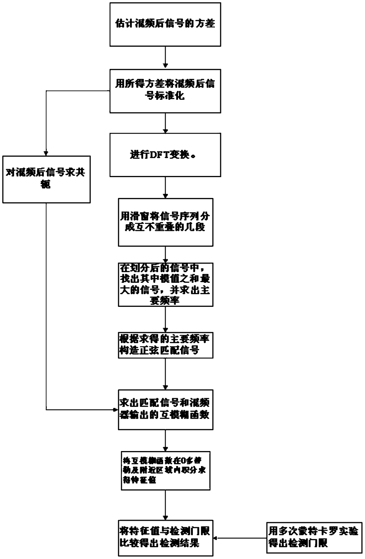 - 项目简介 本发明属于雷达目标检测技术领域,特别涉及基于匹配模糊函数的距离扩展目标检测方法,其包括以下步骤:将回波信号和参考信号进行混频,得到混频后信号,估计出混频器信号的噪声标准差;得出混频后信号的标准化信号;对混频后信号的标准化信号进行离散傅里叶变换,得出离散傅里叶变换后的频域信号;使用矩形窗函数将离散傅里叶变换后的频域信号划分为N/L个子频域信号;对每个子频域信号内的各个频率值取模值并求和,得出频率值模值之和最大的子频域信号在所述N/L个子频域信号中的序号imax,构造匹配信号:得出匹配信号和混频后信号的互模糊函数,得出区域积分特征值P;设置检测门限η,如果P≥η,则认为有目标存在,如果P<η,则认为不存在目标。