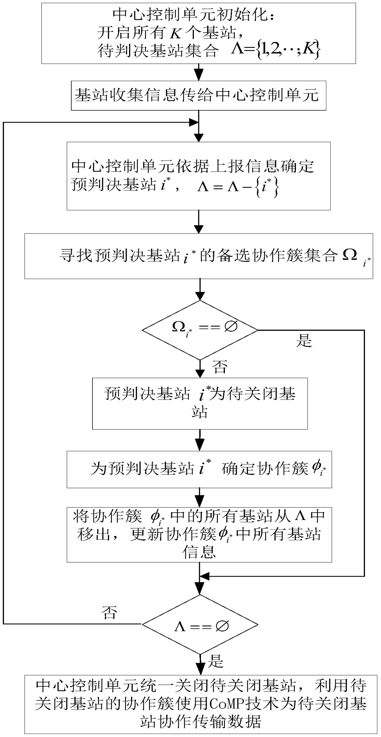 - 项目简介 本发明公开了一种基于多点协作传输技术的蜂窝网络节能方法,主要解决现有技术节能少、不能保障用户服务质量的问题,其实现步骤是:1)中心控制单元开启所有基站,初始化待判决基站集合Λ,收集基站信息;2)利用收集的信息,从待判决基站集合Λ中确定预判决基站i*,并对待判决基站集合进行更新;3)判断预判决基站i*能否关闭,若不能关闭,则该基站开启,否则,该基站为待关闭基站,为其确定协作簇,并更新待判决基站集合Λ;4)判断待判决基站集合Λ是否为空,若不为空,返回步骤2),否则,关闭待关闭基站,协调待关闭基站的协作簇使用CoMP技术为该待关闭基站内用户服务。本发明能节约大量能量,可用于多个宏小区共存的无线接入网络。