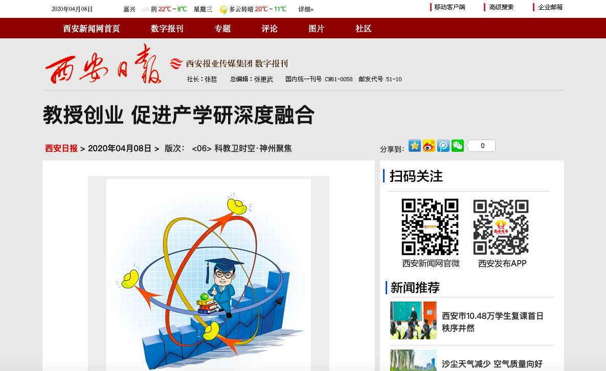 西安日报:教授创业 促进产学研深度融合